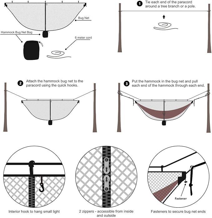 - 【FAST & EASY SET UP】-- Turn your hammock into a tent in seconds. Just hang the included ridge line and use the speed clips to quickly attach the net.