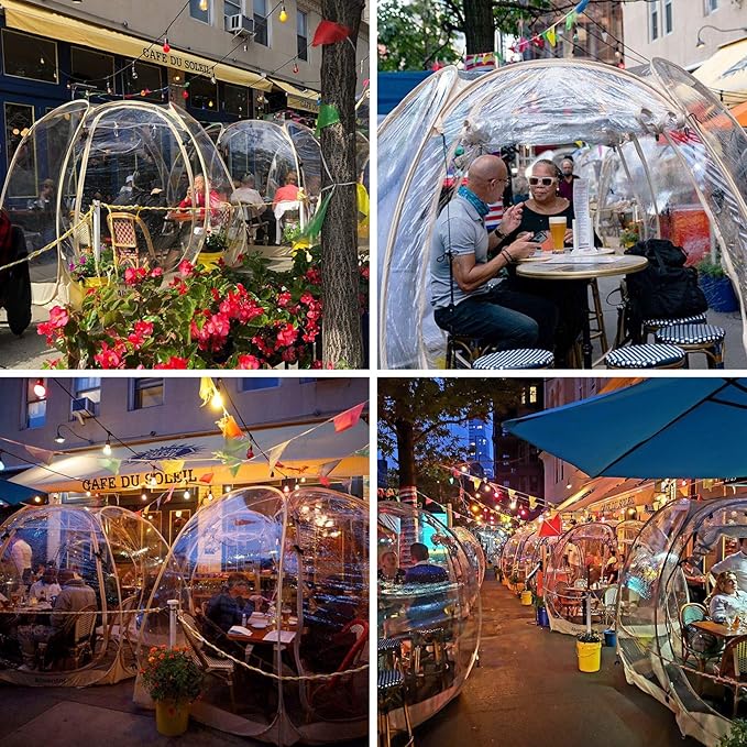 - SPACIOUS AND WARM: Alvantor big bubble gazebo provides a spacious interior shelter that comfortably fits between eight and ten adults. Enough room to place various pieces of furniture so you can give your bubble tent a homely feeling. The eight, transparent PVC windows provide 360° view of your surroundings, whilst the inside of your bubble tent stays warm thanks to the excellent heat retention.