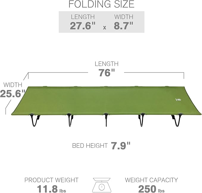 - PACK DOWN SMALL: The small compact cots for adults stores up super compact and fits in the high-quality carry bag, folded dimensions 27.6"Lx8.7W"x3.5"H; easy transportation for camping and store without taking up much space; open dimensions 76"Lx25.6"Wx7.9"H and has plenty of sleeping area