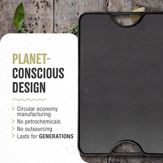 - VERSATILE: Our cast-iron griddle is made with natural materials and can be used almost anywhere, such as on the stove, on induction cooktops, in the oven, over a campfire, or on a grill. Your food will stay warm for longer and will be infused with beneficial natural iron.