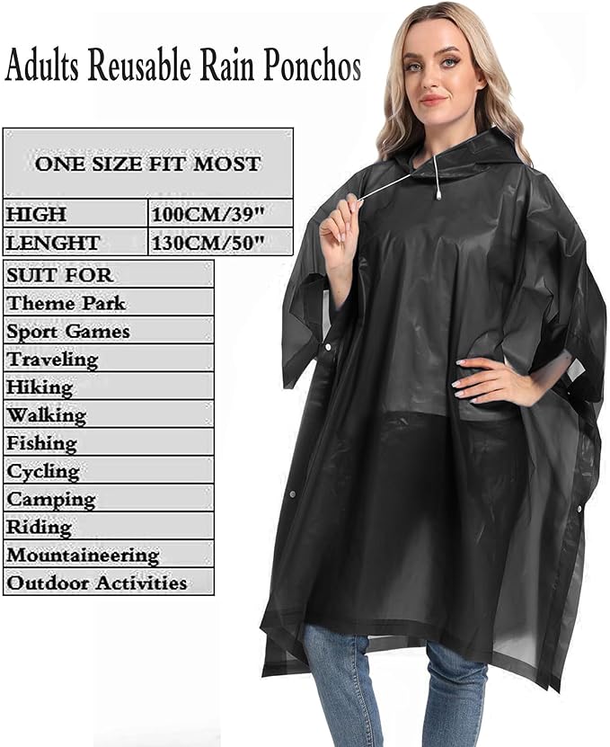 - ☔ 【ENJOY YOUR ADVENTURES WITHOUT WORRYING THAT THE RAIN WILL START】 - Our rain ponchos are great when you pack light and you don’t want to carry around your umbrella or the heavy, space consuming raincoat. When going to Disneyland, a concert, hiking, fishing, stadium or any great outdoor activity that you love.Unisex waterproof ponchos, one size fits most, perfect for men, women, boys and girls.