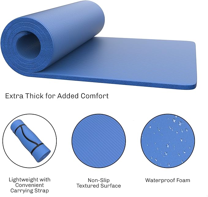 - PRODUCT DETAILS - Material: NBR Foam. Dimensions: (L) 72” x (W) 24” x (H) x 0.75”; Rolled: (L) 24” x (W) 9” x (H) 9”. Weight: 3lbs. Includes Carrying Strap. Color: Dark Blue.