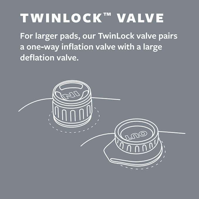- Utilizing two one-way valves, one for inflation and one for deflation, the TwinLock valve system makes setting up and breaking camp a breeze