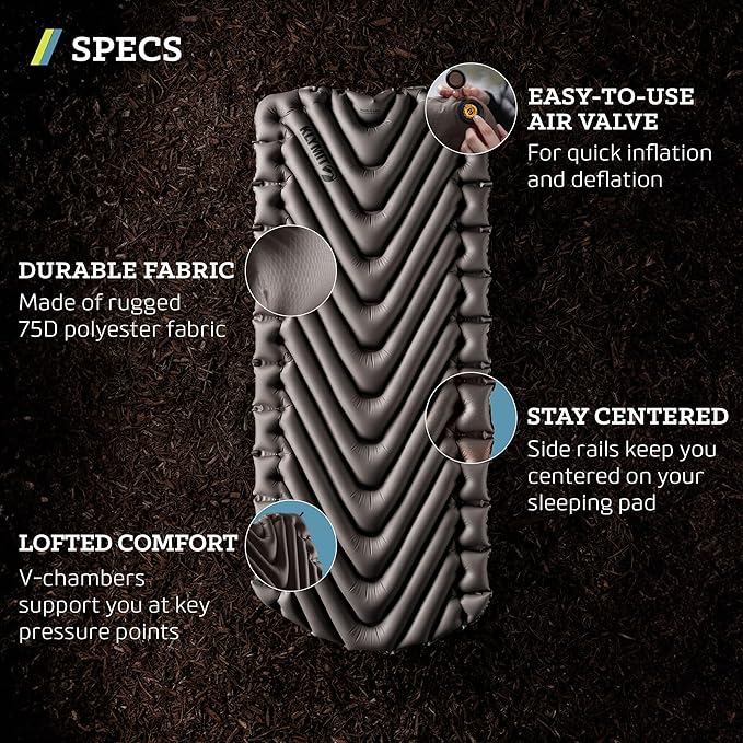 Klymit Static V Luxe Sleeping Pad, Lightweight Lofted Camping Air Mattress for Tents and Cars with Body Mapping Tech, 3 In Thick Grey