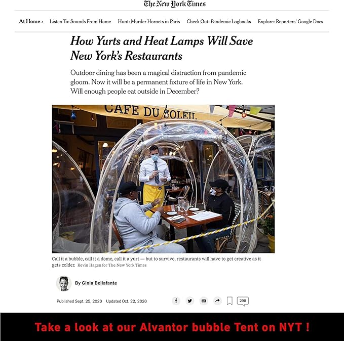 - SPACIOUS AND WARM: Alvantor big bubble gazebo provides a spacious interior shelter that comfortably fits between four and six adults. Enough room to place various pieces of furniture so you can give your bubble tent a homely feeling. The six, transparent PVC windows provide 360° view of your surroundings, whilst the inside of your bubble tent stays warm thanks to the excellent heat retention.