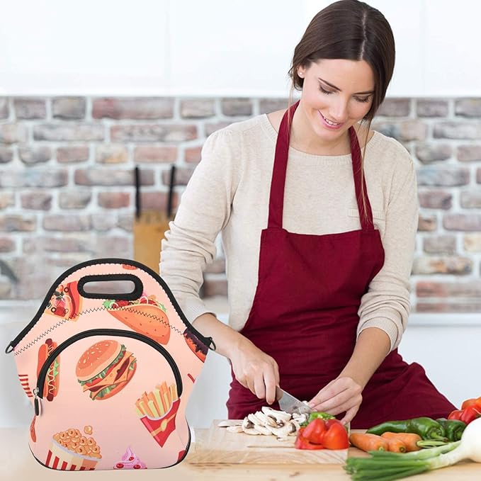 Violet Mist Neoprene Thermal Insulated Lunch Bag Tote Large with Extra Pocket Detachable Adjustable Shoulder Lunchbox Handbags Women men, Hamburger