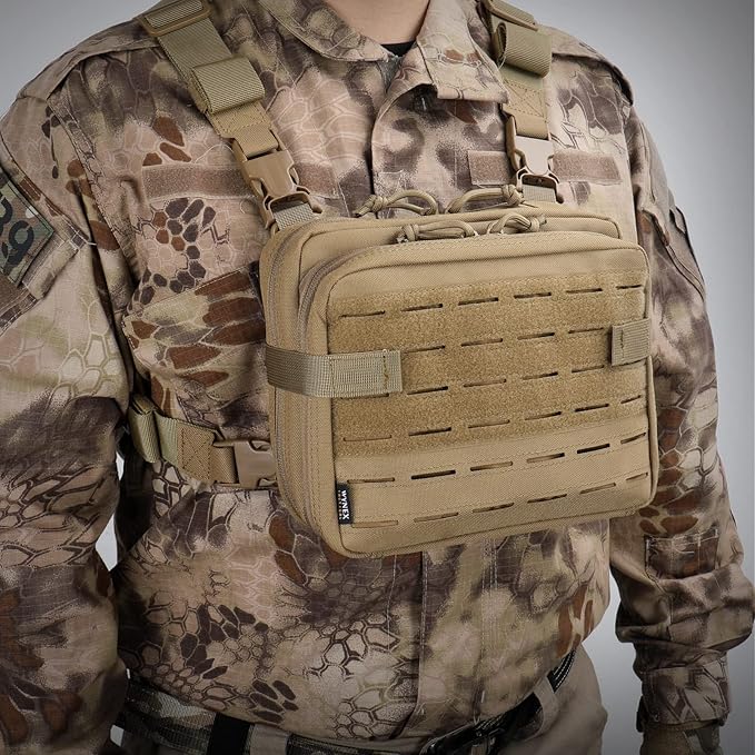 - Premium Nylon & Size: Molle admin pouch is constructed from 1000D Nylon. Dimensions: 29 cm* 23 cm*10 cm/11 "L * 7.5 "H * 3.5 "D. It has paracord inside which can be adjusted to either allow for a chest-mounted "desk" platform or for fully open