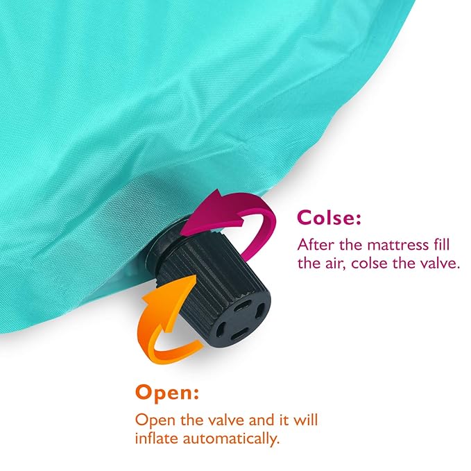 - Self-inflating Design: Free-flow valve inflates the mat with no air pump required.