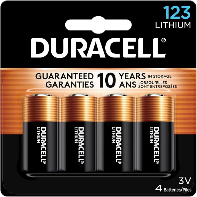 Duracell CR123A 3V Lithium Battery, 4 Count (Pack of 1), 3 Volt High Power for Home Safety, Security Devices, Flashlights, Smoke Alarms, Home Automation