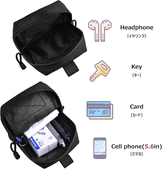 - π CONVENIENCE: Pouch Size: about 5.91 x 4.33 x 2.36 inch. The main compartment and an internal pocket are ideal for storing mobile phones, pens, money, key chains, GPS devices, card, digital cameras, medical supplies, paracord or any necessary tool you need