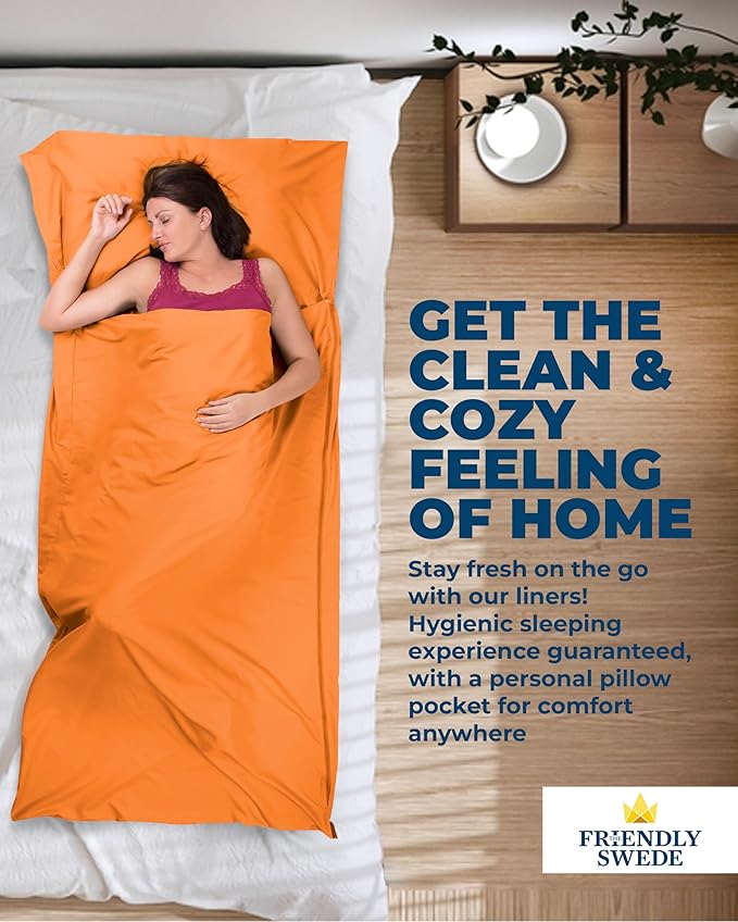 The Friendly Swede Sleeping Bag Liner — Ultralight Polyester or Cold Weather Microfiber Adult Sleep Sack; Thin Travel Sheets for Hotel; Camping Sheets; Travel Sleeping Bag with Pocket-Size Stuff Sack