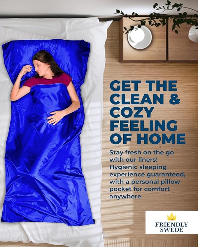 The Friendly Swede Sleeping Bag Liner — Ultralight Polyester or Cold Weather Microfiber Adult Sleep Sack; Thin Travel Sheets for Hotel; Camping Sheets; Travel Sleeping Bag with Pocket-Size Stuff Sack