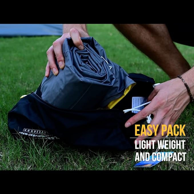 - ✅ RUGGED LONG-LASTING - 75D Polyester pongee fabric with extruded PVC lamination. This is the most durable fabric around used for military parachutes. It's waterproof and warm which will protect you from the wet ground in the most extreme conditions. This inflatable sleeping pad will be a perfect match for your tent, sleeping bag, and camping cot. Designed for extreme durability, this camping gear withstands the harshest conditions and is built to last.