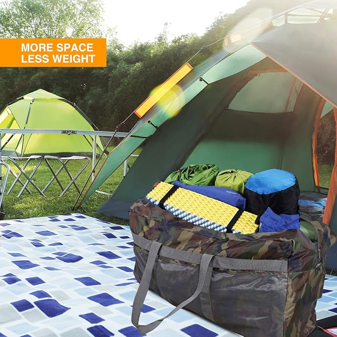 • Large Capacity &Lightweight: Up to 96L with dimensions of 31x12x16"/80x30x40cm; It can be folded into a compact carry pouch of 8.3x6.7x1.58"/21x17x4cm. Weighs only 0.97lbs/440g, and 60lbs weight capacity