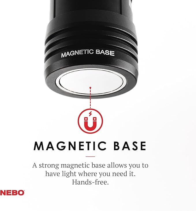 - Operation: The NEBO SLYDE KING LED flashlight and work light has an ergonomic barrel with a thoughtfully placed side positioned on/off button; you can also hold the on/off button to dim the light to your desired brightness; the COB work light will automatically turn on when you slide it open