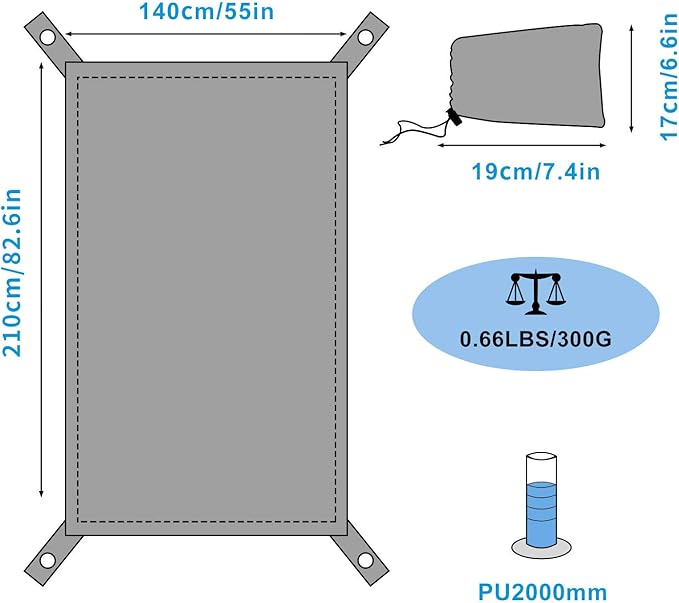 - 【LARGE Enough】: 140x210cm/55x82.67 inches, perfect for 1-2 person. You can place the camp ground cloth under your tent to provide an extra moisture layer.