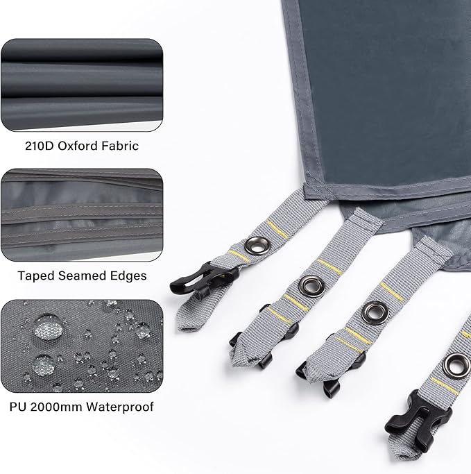 - 【MULTIFUNCTIONAL TARP】-The footprint can be used as a tent tarp to prevent the wear and tear of your tent against the ground; allows you to camp on desert sand or on a sandy beach; also perfect for picnic, or to be used as a sun canopy and more; a must-have for outdoor activities.