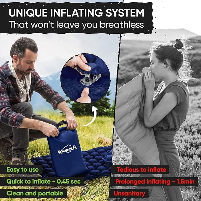 POWERLIX Ultralight Camping Sleeping Pad with Inflation Bag– Compact Lightweight Camping Pad, Outdoor Backpacking Hiking Traveling Airpad Camping Air Mattress Sleeping Mat
