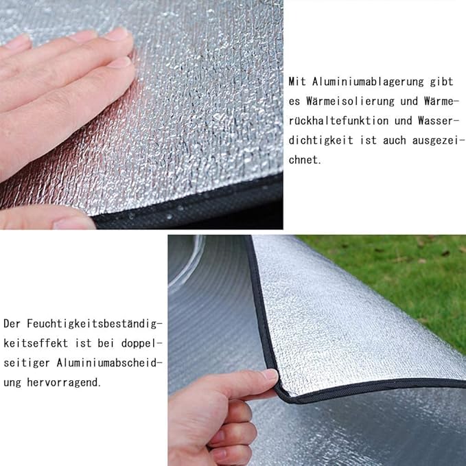 - This waterproof outdoor mat has double sided aluminium foil and inside is made of EPE.
