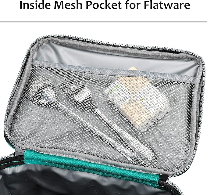 - LARGE CAPACITY: Measuring 9.8 x 7 x 7.8 inches, this adult lunch box offers plenty of room for meals and snacks. It also features a front zipper pocket for essentials like keys and napkins, side mesh pockets for water bottles, and an interior mesh pocket for cutlery like forks, spoons, and knives, making it the perfect lunch box for men or women who pack meals for the day.