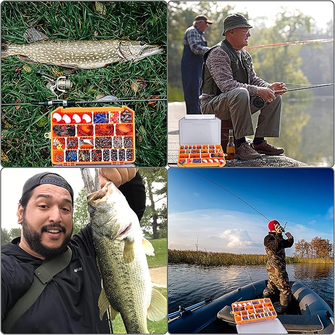 - 【All-in-One Pack】- This fishing accessories kit has 263 essential items for any angler, including Fishing Hooks, Weights Sinkers, Spinner Blades, Floating Bobbers, Barrel Swivels, Split Rings, and more. It's perfect for any fishing condition, with 34 Hooks, 48 Sinkers, 4 Blades, 4 Bobbers, 30 Swivels, 30 Slides, and other accessories. The kit helps get your bait to the right depth, attract fish, and provide abrasion resistance. The fishing tackle box keeps everything organized and accessible.