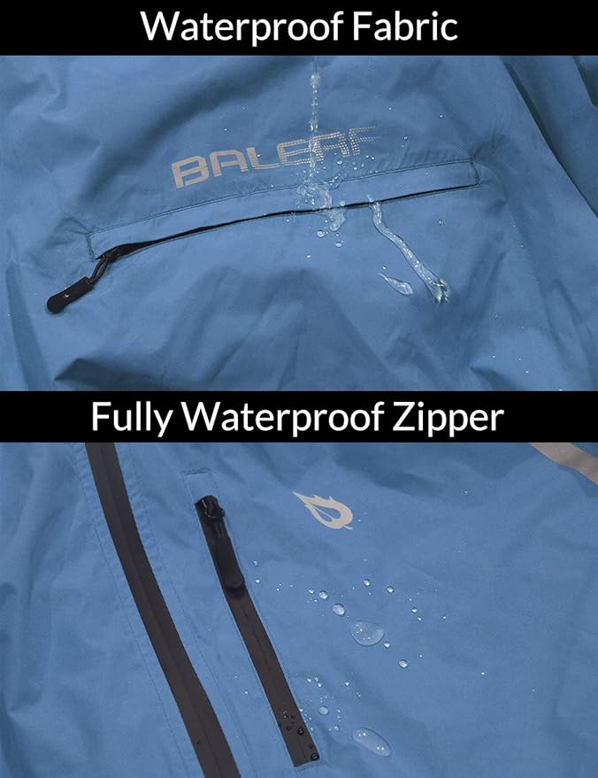 baleaf Men's Rain Jacket Waterproof Windbreaker Running Cycling Golf Hiking Gear Hood Lightweight Reflective Packable