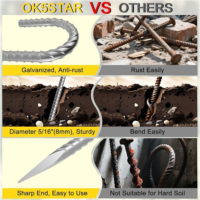- Material: OK5STAR bounce house stakes are made of heavy duty steel,Hot-dip galvanized surface,Not easy to rust prolongs the service time