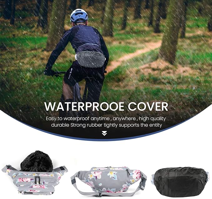 - 【6 MULTI-POCKET DESIGN】Our fanny packs for women & men will keep your hands & pockets free! 5 zipper pockets of different sizes and a hidden zipper pocket design, hidden zip perfect give your valuables extra security, all your needs. The largest pocket can easily accommodate a standard water bottle. A zippered exterior pocket located behind the waist band with Rain Cover it can better protect important items in rainy days.