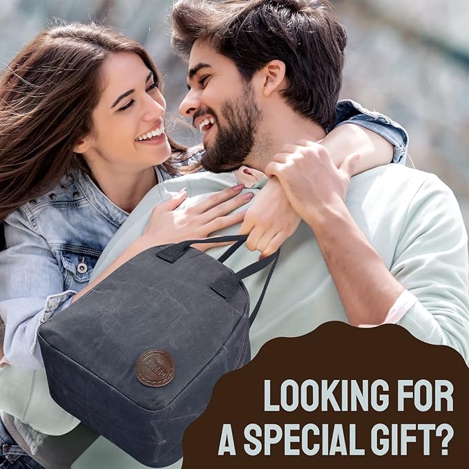 - QUALITY MATERIAL: The sturdy waxed canvas of this adult lunch box is indicative of high-quality. For best results, leave the lunch box closed 24h with a food container inside to regain its shape. This reusable insulated lunch bag keeps your meal warm or cool all day! It's spacious but compact, allowing you to carry ample food without being bulky