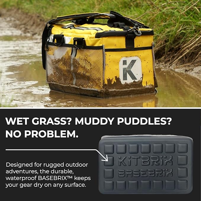 - EASY TO WIPE CLEAN: PERFECT FOR MUDDY GEAR - Crafted from water-resistant TPU-laminated nylon with wipe-clean surfaces inside and out, the KitBrix is ideal for muddy outdoor sports. The waterproof BASEBRIX allows you to place it on wet pitches, lakeside mud, or grassy fields. Stands upright on any surface for easy access.