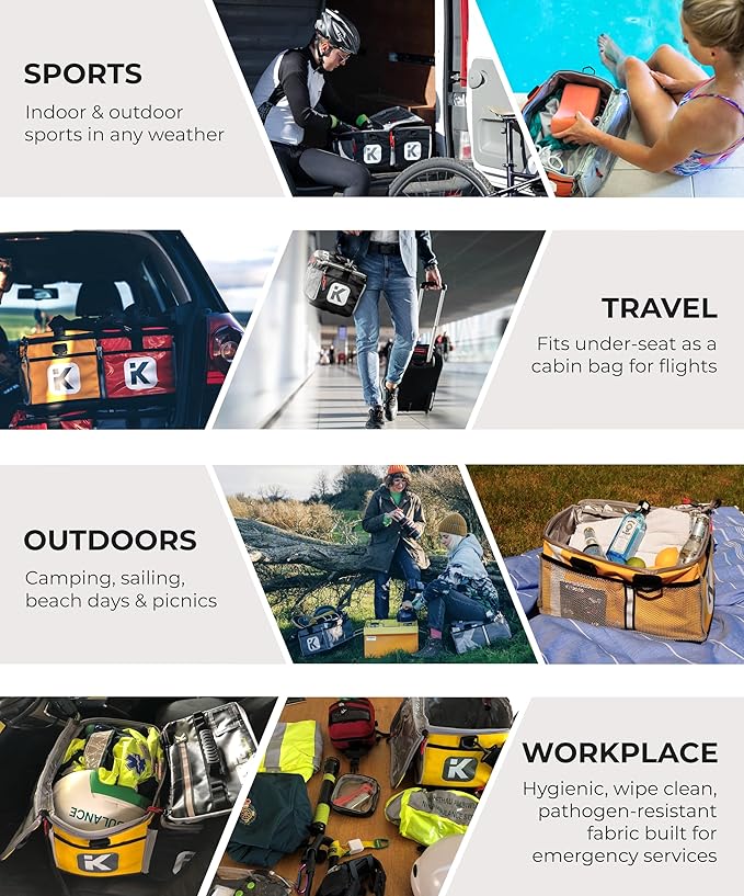 - UNDER-SEAT CABIN BAG, IDEAL FOR TRAVEL - Light and compact, the KitBrix fits under the seat of an airplane and can be used as an under seat cabin bag. Its dimensions (15.3" x 9.4" x 9.4") and weight (2.8 lbs) make it a lightweight carry on bag. Whether you're heading to the gym, a race, or a weekend away, it's the perfect all-in-one solution.