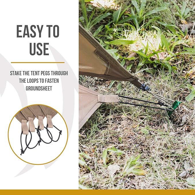 - Utility Tent Tarp: Multipurpose-design for camping, backpacking, the beach, picnics or sporting events, can be set up as a temporary tarp functioning as a sun canopy or rain cover