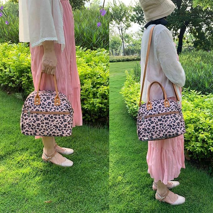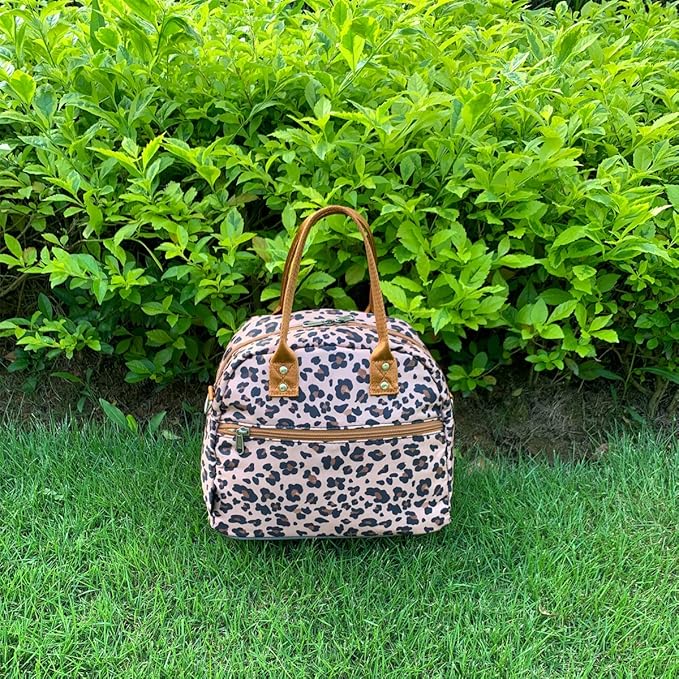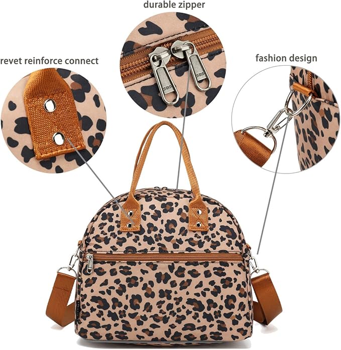 FlowFly Insulated Lunch Bag With Shoulder Strap for Women, Men, and Kids, Large and Reusable, Handle, Freezable Work and School Travel Tote and Meal Prep Organizer,Leapard