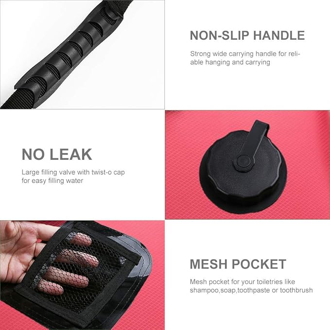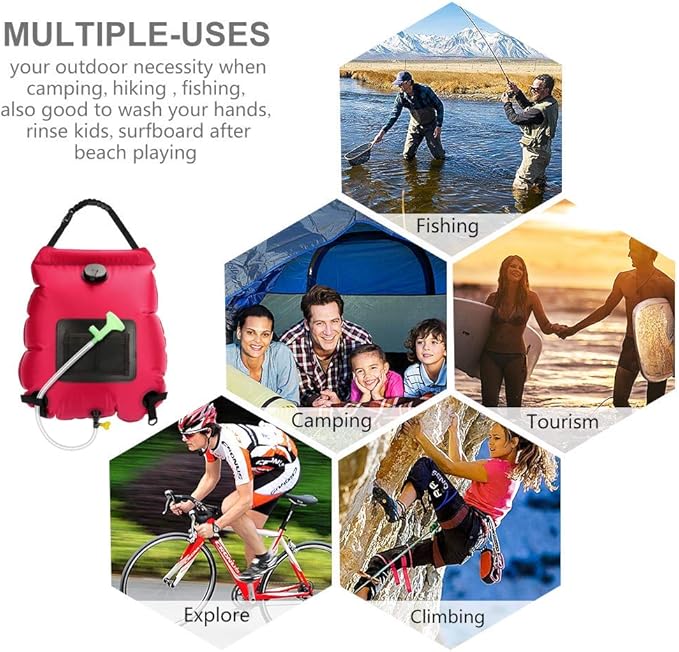 - 【High Water Capacity】This camping shower bag can carry up to 5 gallons/20L water for showering outdoor, let you enjoy a better and refreshing shower anywhere. In addition, our portable shower bag is so compact and lightweight that you can carry it in luggage, backpack or car trunk conveniently.