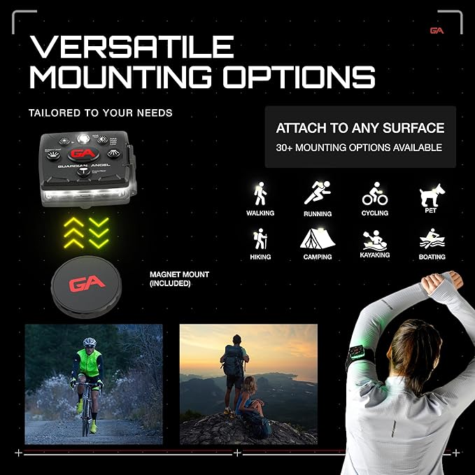 - ๐ฉ๐ฒ๐ฟ๐๐ฎ๐๐ถ๐น๐ฒ ๐ ๐ผ๐๐ป๐๐ถ๐ป๐ด: Each Micro device features a built-in rare-Earth magnet that works with all GA mounts as part of the patented Magnet Mounting System. Securely attach to clothing with included magnetic mount, or secure in seconds to your bike, helmet, dog collar or leash, stroller, backpack, tent, vehicle & more with the purchase of activity-specific mounts. 2 built-in screw mounts add extra security. One light offers 1,000s of uses and can be mounted to anything.