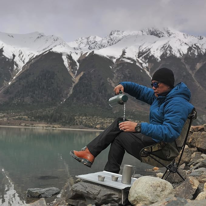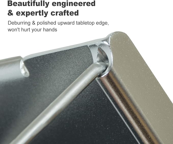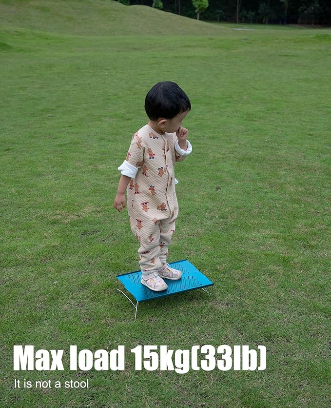 - Ultralight and lifelong durability, hollow out Aluminum alloy tabletop to reduce weight, strong stainless legs; Only weighs 1.42 lbs, supports up 33 lbs; Surface area 14.17 × 14.76 inches, Height 3.9 inches; Beautifully engineered and expertly crafted, polished upward tabletop edge, won’t hurt your hands, prevent utensils from falling