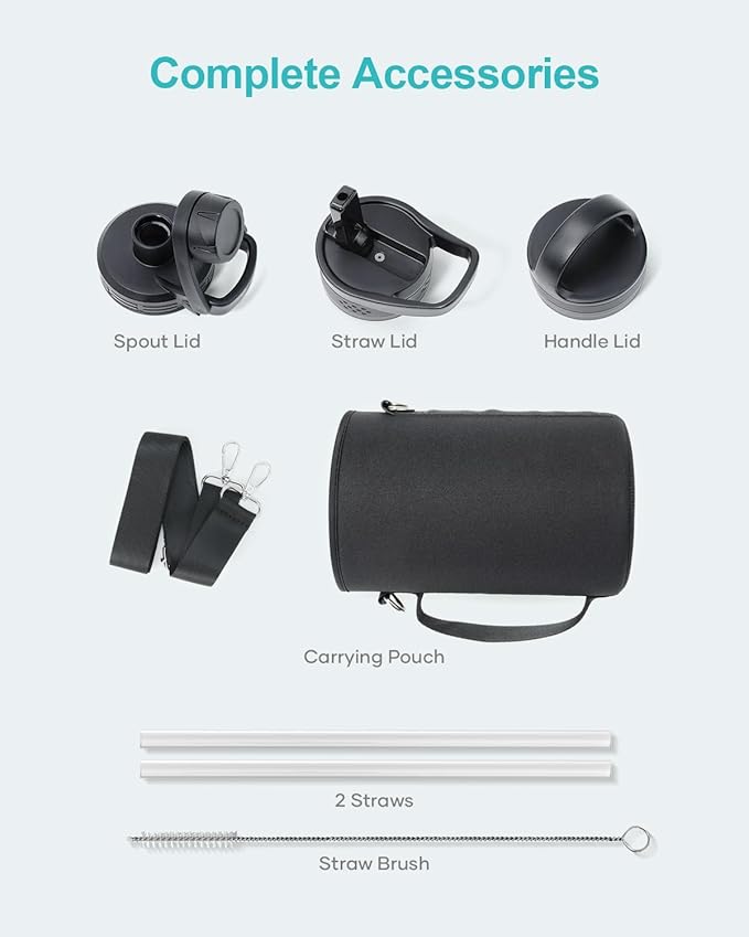 - 3 Caps Pack, 100% Leak-Proof: BUZIO stainless steel water bottle comes with 3 lids: portable handle lid, easy-twist spout lid, and flip-up straw lid to meet camping, hiking, cycling, fitness sports and more. Each lid has a thickened 360° seal for 100% leak-proof.