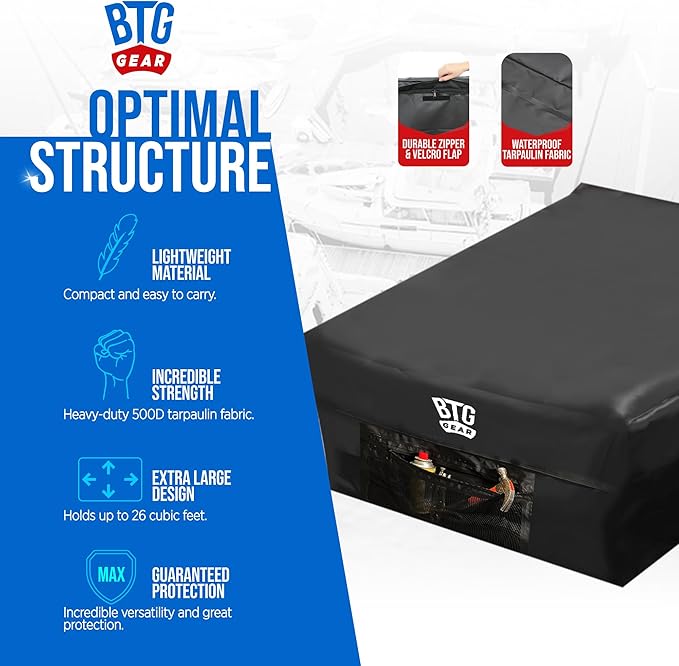 - TRUCK BAG HOLDS UP TO 26 CUBIC FEET: Capable of accommodating up to 26 cubic feet of storage, the truck bag offers ample space for your luggage, sporting gear, hunting equipment, and more. With its generous dimensions of 51" long x 40" wide x 22" tall, it provides a substantial storage solution.