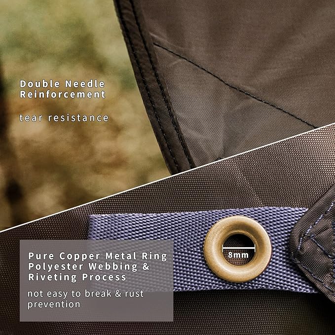 - Durable & Tear-Resistant: Unigear hammock rain tarp is made of 210D polyester oxford fabric, which has a higher textile density than ordinary 210D polyester. The fabric splicing place adopts double needle reinforcement design, which makes the camping tarp more durable and tear-resistant. A total of 8 polyester webbings enhance the stability of the edges and the ground and create more possibilities for setting up