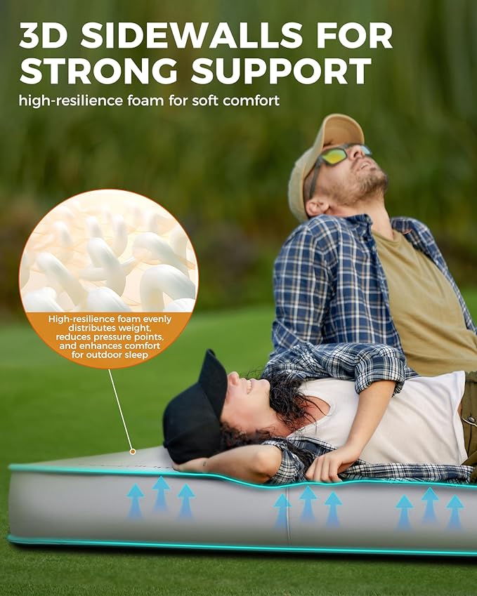 - DESIGNED FOR TWO PEOPLE FOR EXTRA COMFORT: This Queen-sized double sleeping pad is perfect for couples or two-person camping trips. It offers ample space for two people to sleep comfortably, ensuring that both of you enjoy a restful night in the great outdoors. With dimensions of 79 x 50 x 6 inches, it provides generous room, whether you're camping in a tent, car, or on the ground.