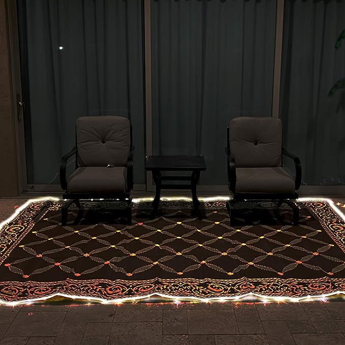 Stylish Camping L118117WL 8-feet by 11-feet LED Illuminated Patio Mat - Outdoor Patio Brown/Beige RV Camping Mat