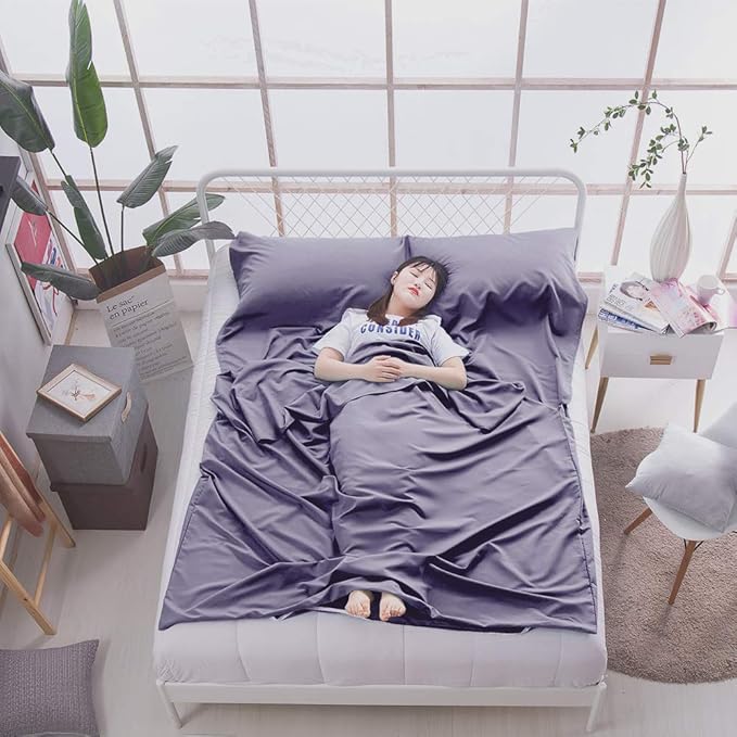 • HUMANIZED DESIGN: The lightweight sleeping travel sheet has two buckles on the top of the sheet,opening on one or two side to make it easy for you to get into. It has an invisible zipper at the bottom for easy ventilation and free movement of your feet.You can open the bottom zipper if you feel hot sleeping in travel sheets.