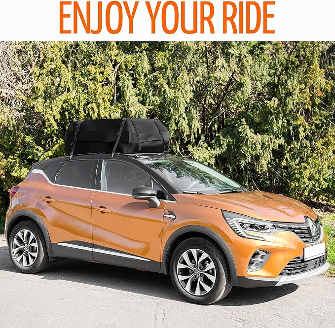 ZONETECH Car Roof Cargo Bag Water Resistant with a Protective Anti Slip Mat – 8 Reinforced Premium Quality Straps Rubberized Extra Cushioning Pad, Travel, Touring, Road Trips for Vehicle, SUV