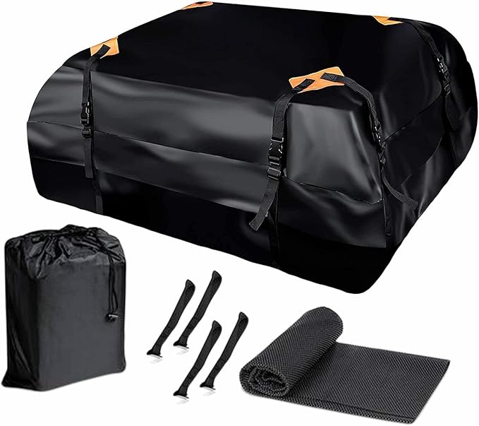 ZONETECH Car Roof Cargo Bag Water Resistant with a Protective Anti Slip Mat – 8 Reinforced Premium Quality Straps Rubberized Extra Cushioning Pad, Travel, Touring, Road Trips for Vehicle, SUV