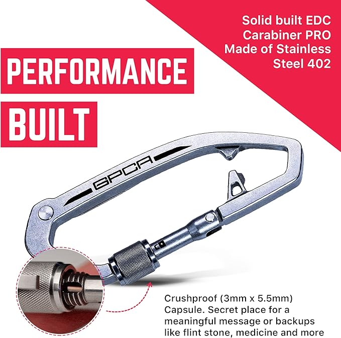 - PREMIUM GRADE MATERIALS: GPCA Carabiner Keychain Clip is known for its strength and durability. It serves as a reliable travel accessory, perfect for outdoor adventures. With a high load-bearing capacity, our carabiner keychain clip is not just for keys. It can handle heavier items like tools, flashlights, or even small bags, making it a versatile tool for any situation.