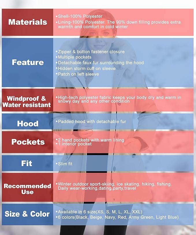 - Superior Fabric: Made from 90% Duck Down filling and polypropylene lining insulation in the hood, yoke, underarms, and pockets, keep you warm and comfortable. This down coat works well in Chicago, Alaska, Seattle, New York, Canada, Washington and so on.