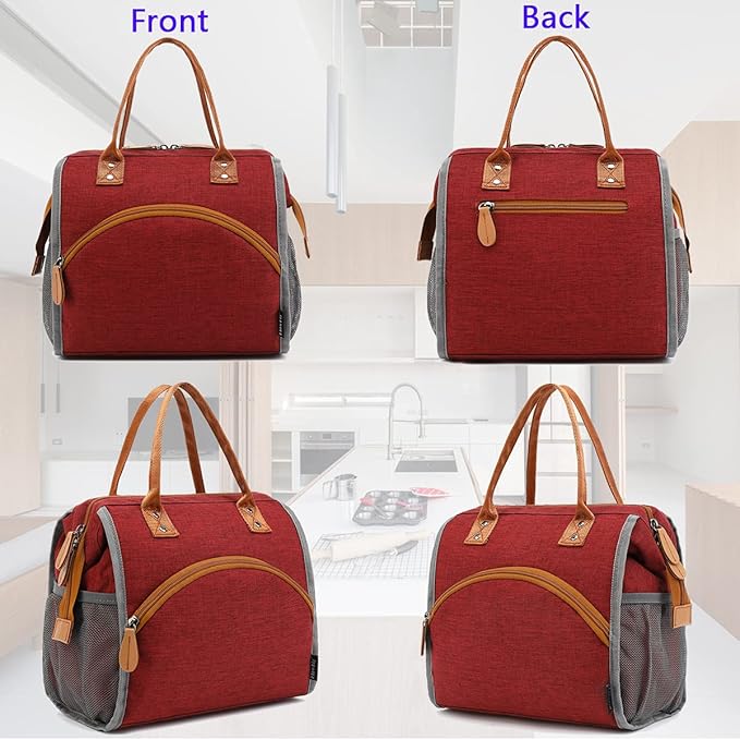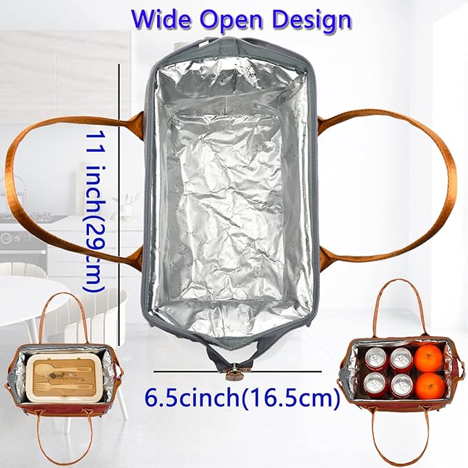 - ✿ Wide-Open Design & Large Size: Our women bag can be opened up to 11"L x 6.5"W by dual zipper closure, you can put into or take out of your lunch or other kinds of stuff horizontally, avoid spilling soup or liquid in the bag. The dimension is:11” L×6.5” W×11” H,it could give roomy storage space you need to hold your favorite meals, delis, and lunch treat. You could fill the compartments or pockets with lunch boxes, food containers, condiments, fruit salad bowls and other essentials.