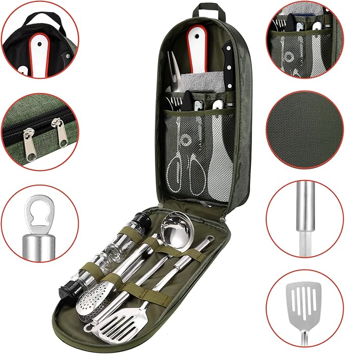 - 【Travel gift】 Make every birthday, Father’s Day/Mother’s Day, anniversary, college graduation and Christmas unforgettable! If you encounter any problems with the camping kitchen utensil set, please feel free to contact us, we will provide you with 24 hours after-sales service