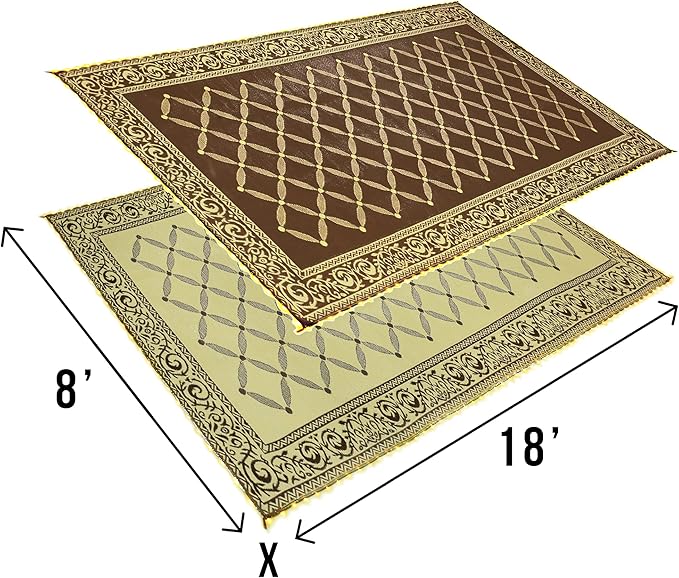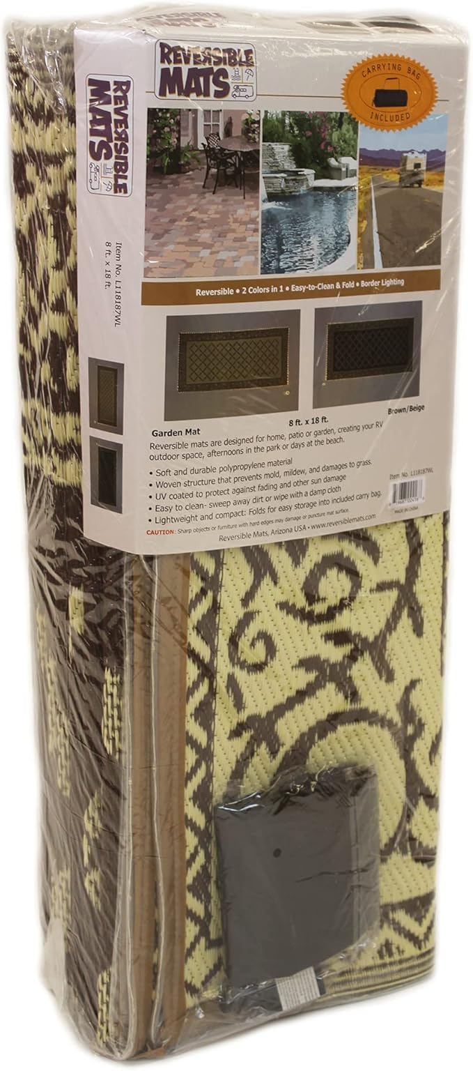 Stylish Camping L118187WL 8-feet by 18-feet LED Illuminated Patio Mat - Outdoor Patio Brown/Beige RV Camping Mat
