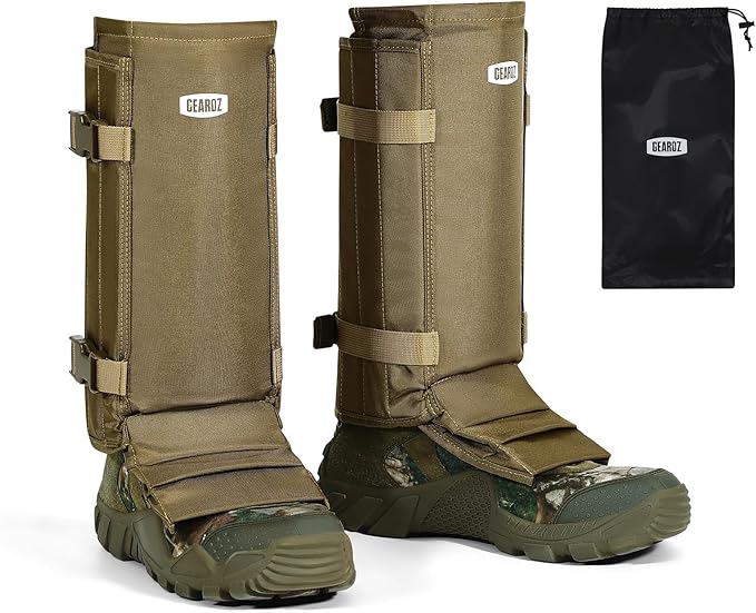 • 👍LIGHTWEIGHT & PORTABLE: The GearOZ snake bite guard is incredibly lightweight with just 13oz each. They can be easily folded and stored in the provided storage bag when they are not in use. Whether you're hunting, weed whacking, hiking or engaging in various outdoor activities, these shoe gaiters are your perfect companion.